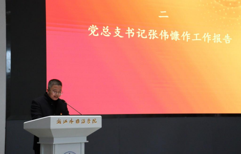 大会在庄严肃穆的国歌声中开幕。学院党总支书记张伟慷代表学院党总支委员会作工作报告。他指出,学院重点围绕学校“十四五”发展规划要求和“三地四域”发展愿景,开展党史学习教育工作;通过“三为”实践进一步凝心聚力,进行意识形态教育工作;落实内部巡查整改工作,重点加强人才队伍的建设并积极对接浙江开放强省建设,作进一步规划。
