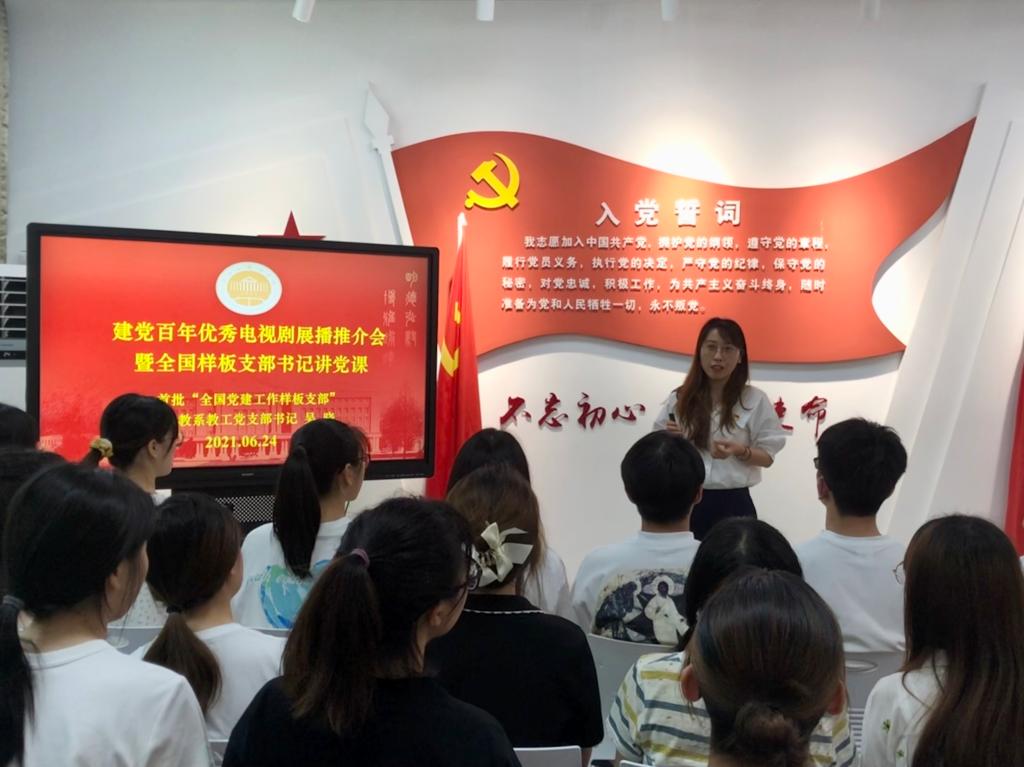 全国党建工作样板支部、科学教育系教工党支部书记吴晓在党课中分享了她观看建党百年优秀电视剧《理想照耀中国》的心得体会。