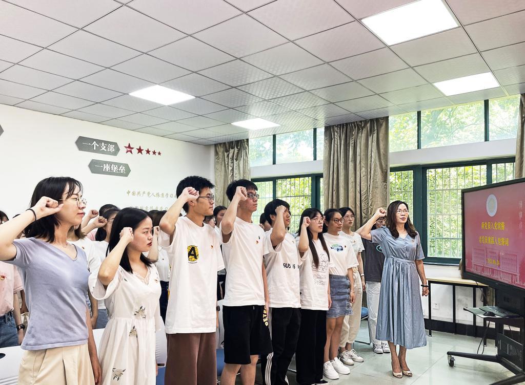 “我志愿加入中国共产党……对党忠诚,积极工作,为共产主义奋斗终身,随时准备为党和人民牺牲一切。”40余名师生党员在学院党总支书记吴莉萍的带领下,面向党旗,庄严宣誓。宣誓后,吴莉萍书记通过回顾中国共产党建党百年来的丰功伟绩,激励师生党员“立大志,有担当,行大道”,鼓励大家时刻牢记中国共产党人的初心与使命,做有理想信念、有历史使命感的党员,要厚植家国情怀、勇于担当大任。她还建议同学们珍惜时光、积极奋斗,以建党百年为新契机,身体力行践行青春的责任与担当,将自己的青春华章写在祖国的大地上。