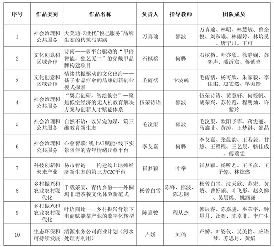 经过评比,学院拟推荐以下10支团队参与校级评比: