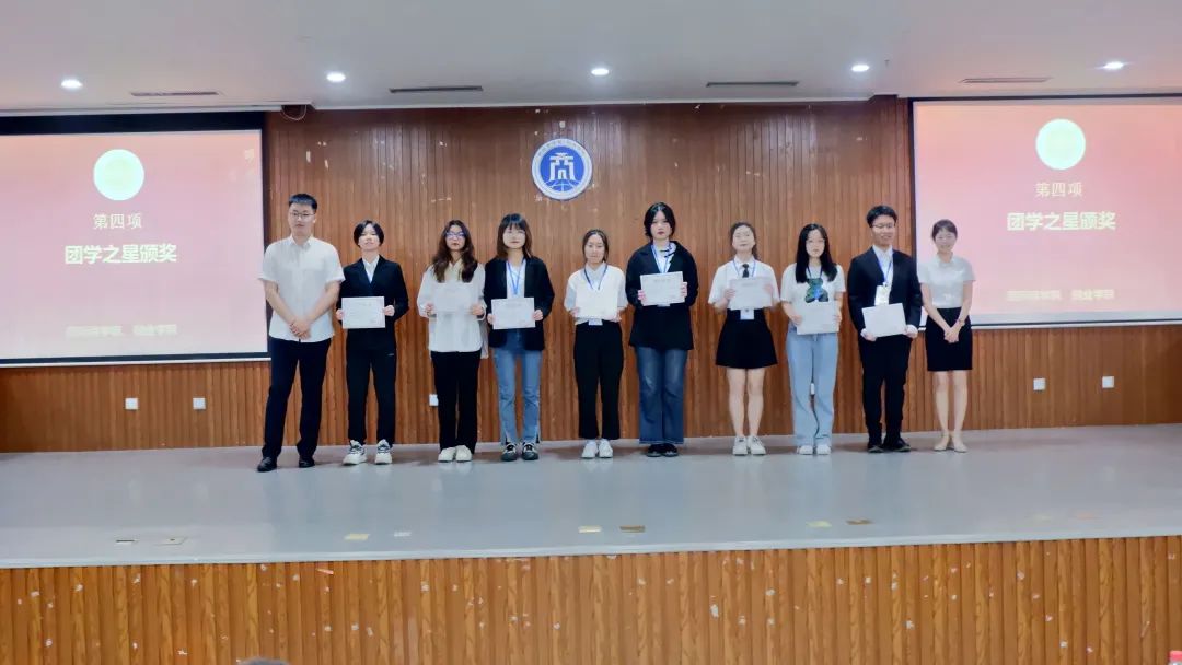 接着是大旗交接仪式与团学之星颁奖。2022届成员从2021届接过旗帜,接过责任。团学之星从指导老师手中接过奖状——这是鼓励与嘉奖,更是担当与鞭策。
