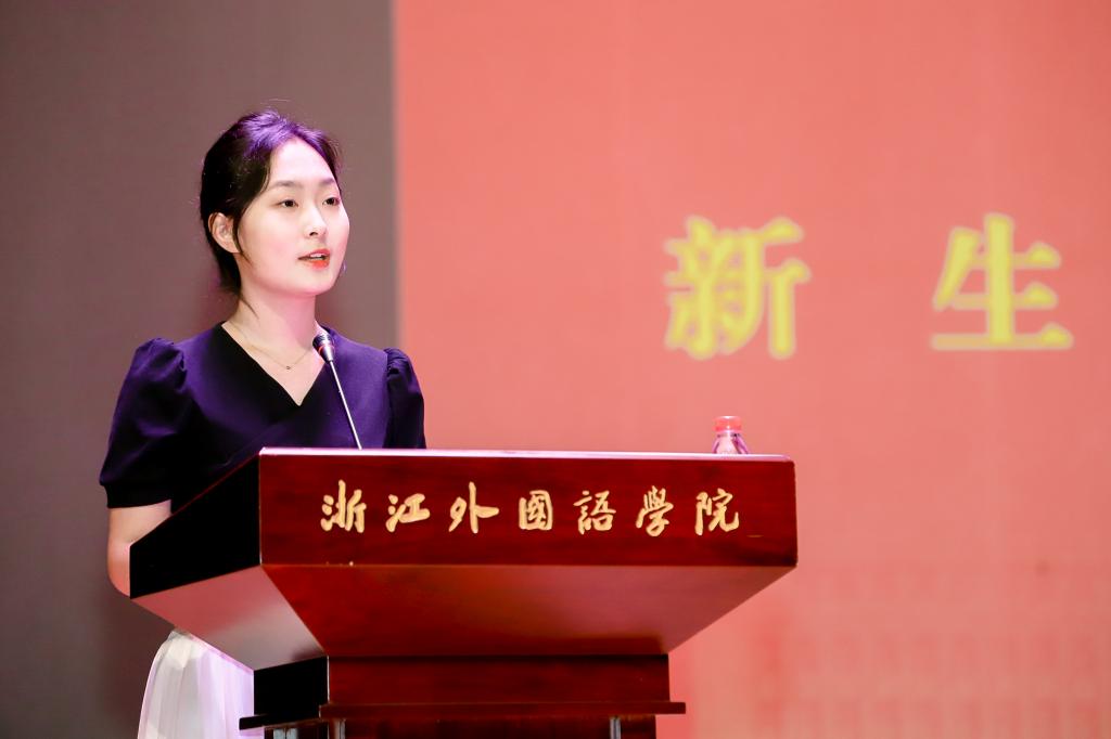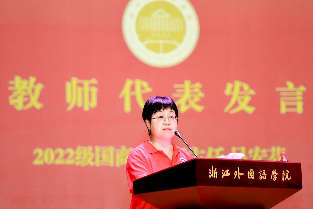 教师代表2022级新生班主任吕宏芬老师希望大家都能从“浙里”出发,向着“更好的自己”前进。她勉励新生立足当前、明确目标,脚踏实地、砥砺前行、勇敢追梦,以青春之光照亮奋进之路,不负韶华不负时代,最终圆梦浙外。
