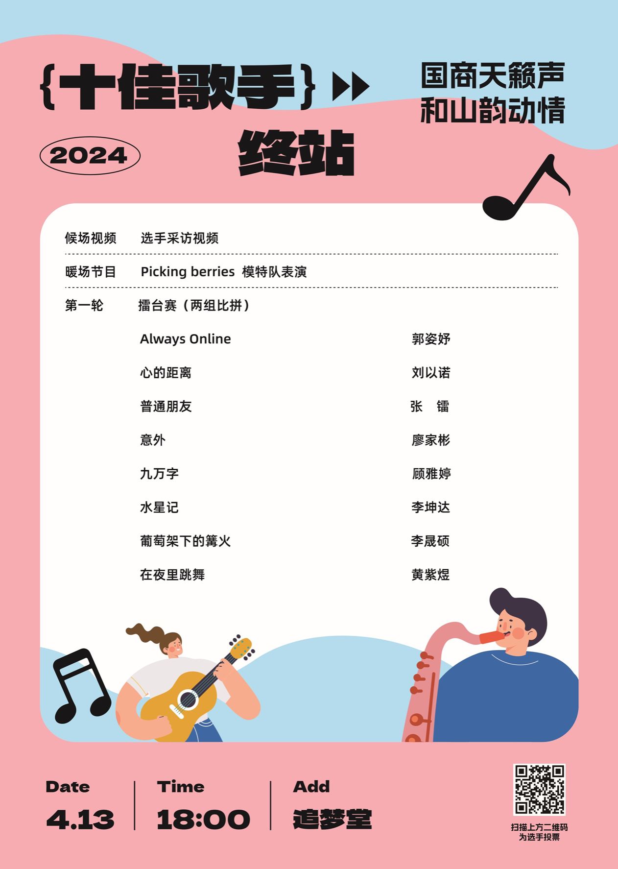 4月13日(周六)18:00 追梦堂