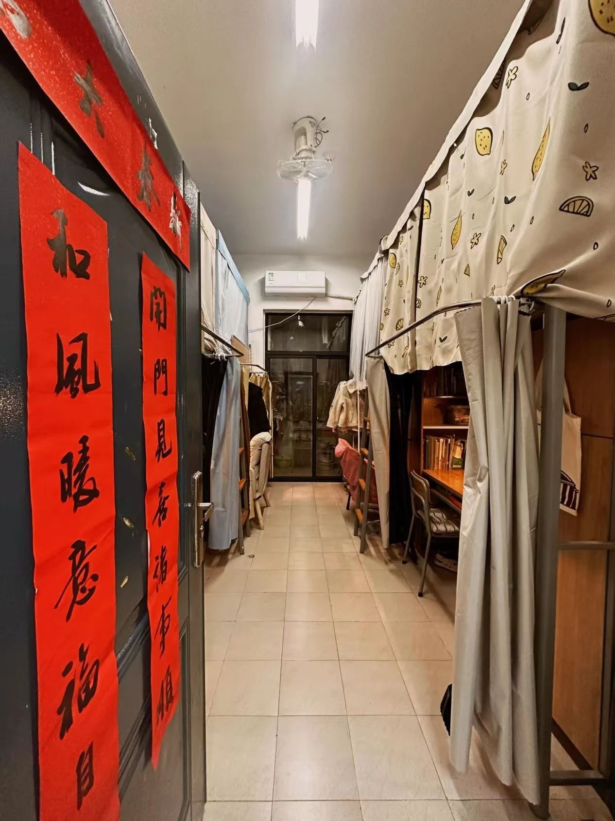 设计理念:“和暖居”——和风暖意,共筑美好。寓意室友之间的和睦相处与温馨氛围。门口张贴的对联“开门见喜诸事顺,和风暖意福自来”,横批“新春大吉”,象征新年的祝福与对未来生活的美好期许。围绕这一主题,我们的设计充分融合诗意、温情与创意,打造一个富有个性且暖意融融的生活空间。