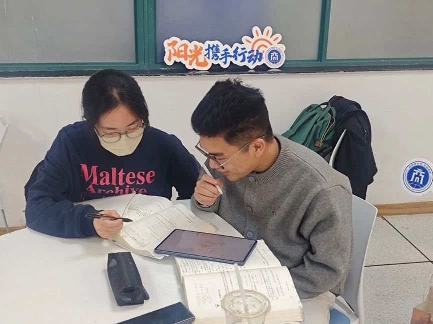 学院积极发挥品学兼优同学的先锋模范作用,通过一对一和一对多的形式,提供点对点学业指导帮助,报名参与人数40 余人,累计结成帮扶小组 20 余对,辅导科目涵盖高等数学、概率论、线性代数、大学英语、宏观经济学等。阳光同行人,22电商1班的郁玉梅同学提到:“来参加活动的同学积极性非常强,大家都非常认真地做笔记,平时积累的问题也会主动提出,通过这几次结队学习,很多同学说上课进度能跟上了”。