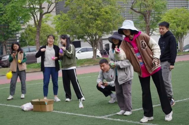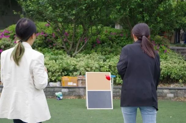 活动中,同学们在用装满水的气球砸向木板,丢掉“坏情绪”;登上寻语山寻找散落的材料兑换卡,体力的消耗与脑力的角逐同步开展,释放久积心头的压抑。在寻找兑换卡过程中,部分同学更是在工作人员处通过唱歌、背诗等任务获取线索提示信息,也有的同学在亭中静静休憩,在温暖的春意中敞开心怀。