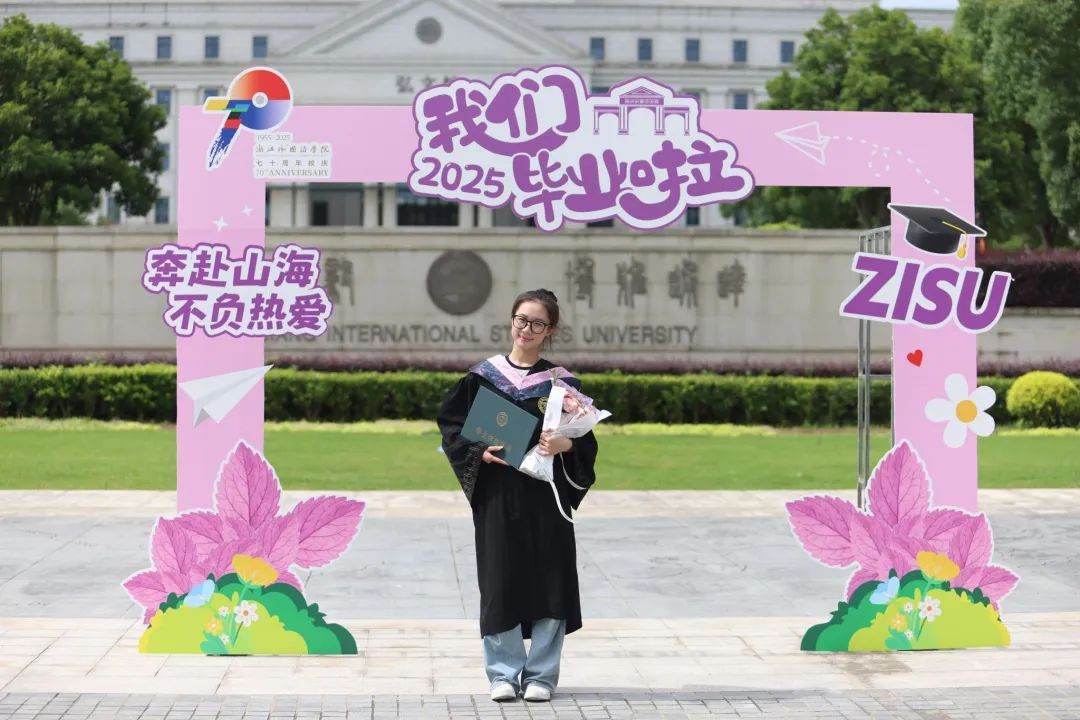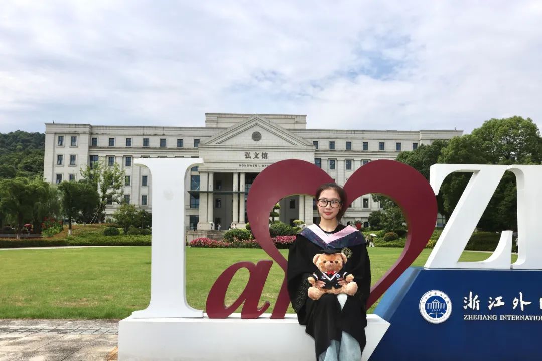 站在毕业照前,指尖轻抚胸前印着校训“明德弘毅、博雅通达”的徽章,身旁憨态可掬的浙外特色玩偶静静伫立,小熊身上,我的名字被细细绣制,专属温度流淌开来。大学时光转瞬即逝,那些在后宫电影院