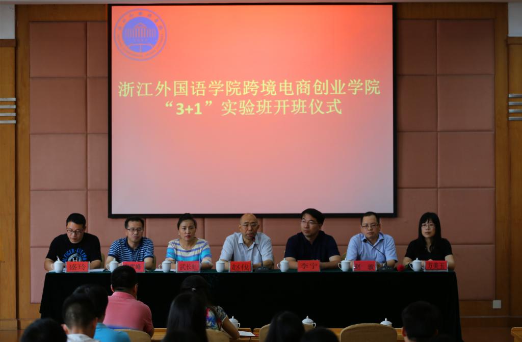 跨境电商创业学院首届“3+1”实验班开班仪式在文三校区芳草苑二楼多功能厅隆重举行。校党委副书记兼创业学院院长赵伐教授、创业学院理事中国(杭州)跨境电子商务综合试验区外联宣传部部武长虹女士和阿里巴巴网络技术有限公司速卖大学校长横刀先生、华立创客社区的领导、企业代表以及学校教务处、学工部领导、科技学院领导、教师代表等出席开班仪式。来自全校5个学院13个专业的首批44名“3+1”实验班同学参加仪式。大会由学工部部长兼学生处处长盛玲主持。