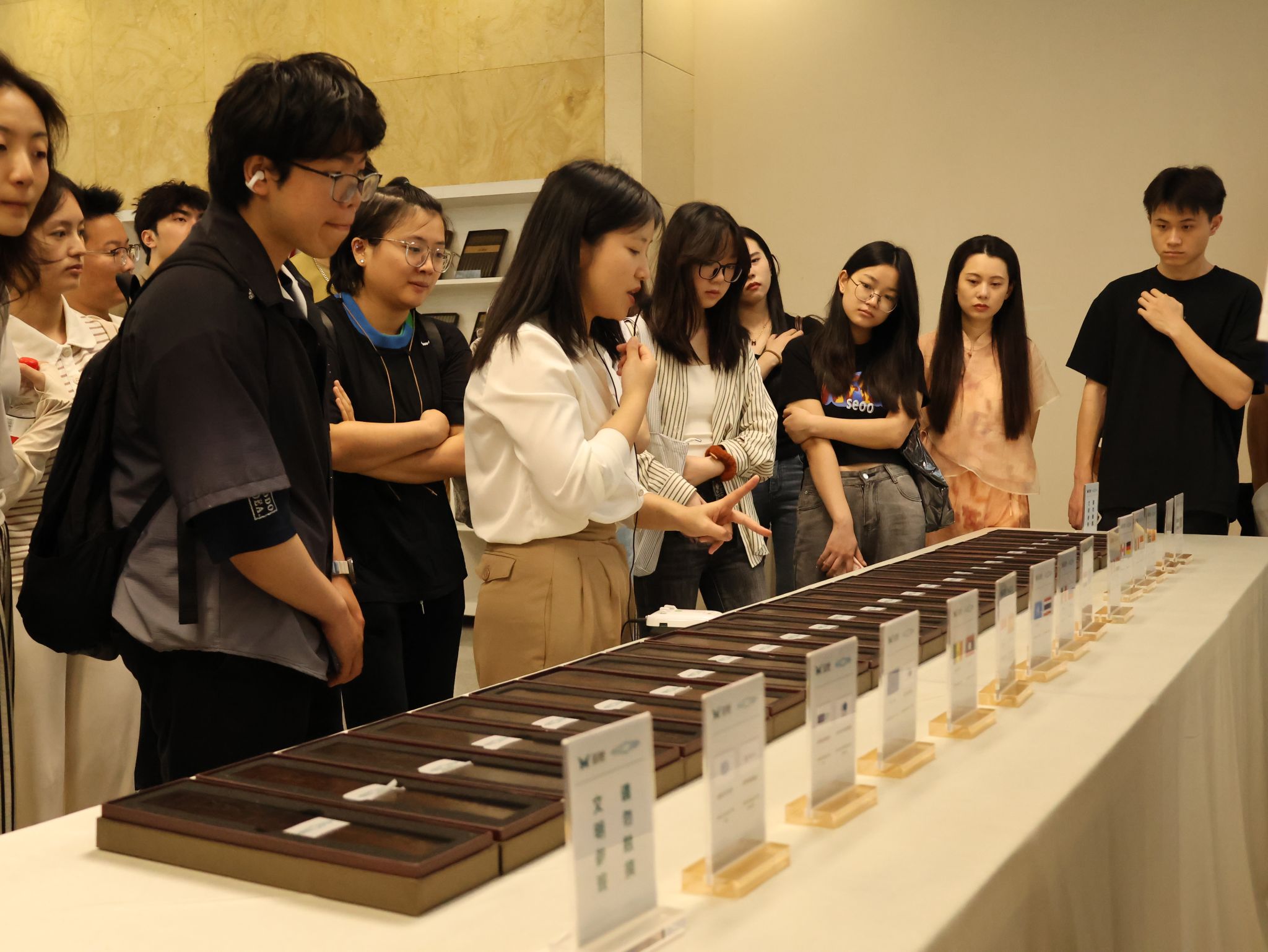 姚丽娟带领“3+1”实验班同学参观了公司园区,并带领同学们亲身体验产品,随后带同学们参加介绍会和就业指导会。在介绍会上,双枪人力资源总监黄蒙爱详细介绍了公司的发展历程、人才培养体系以及公司在跨境电商方面的发展情况,并说明了双枪的招聘岗位需求。此外,黄蒙爱还为同学们进行了详细的就业指导。紧接着,已入职双枪的3位浙外优秀学子覃梦茜(2024届跨境电商实验班学员)、吴鸿儒和朱睿分享了他们在双枪的工作经历和收获。同学们在互动环节积极提问,现场氛围十分活跃,大家纷纷表示收获颇丰。