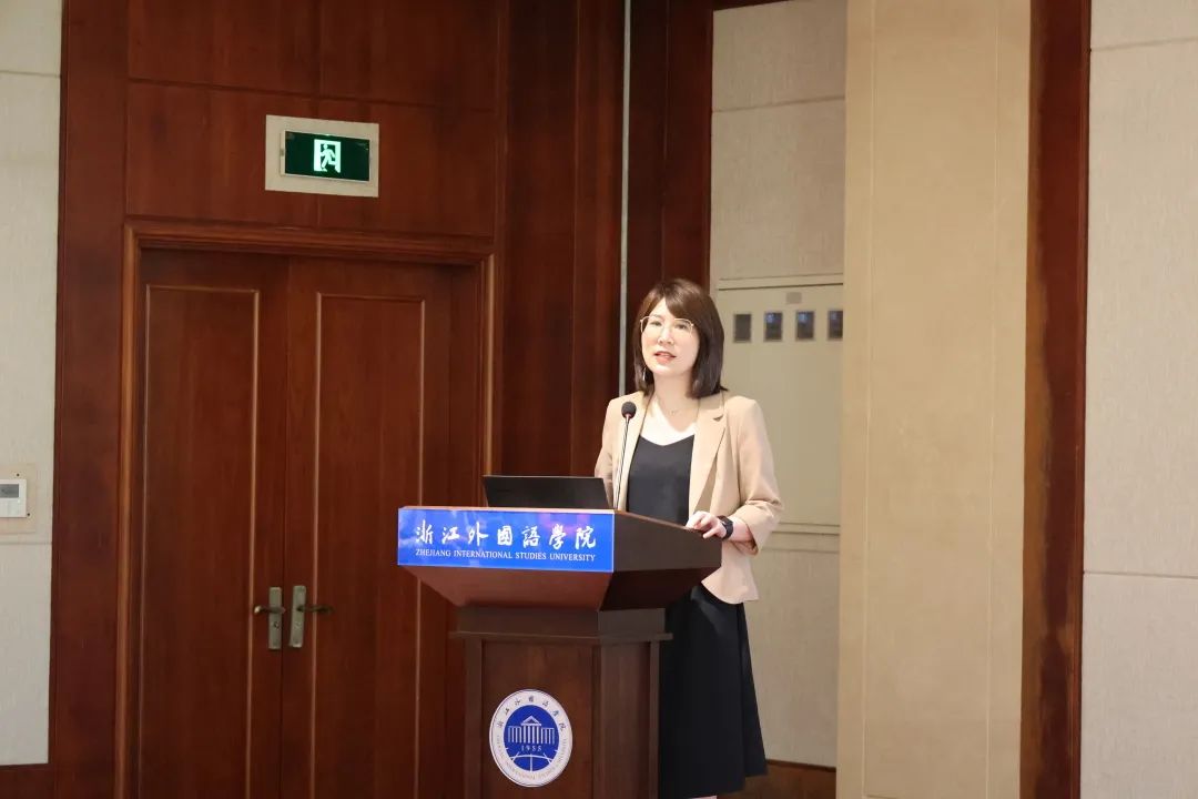 我校党委委员、副校长柴改英致欢迎辞。她对莅临本次大会的嘉宾表示热烈欢迎,随后她指出学校将会持续围绕国际化人才培养目标,继续服务浙江省数字经济和外向型经济建设,努力贡献浙外智慧,培养应用型人才;最后,柴校长希望浙外学子能够踊跃参与大赛,赛出浙外风采。