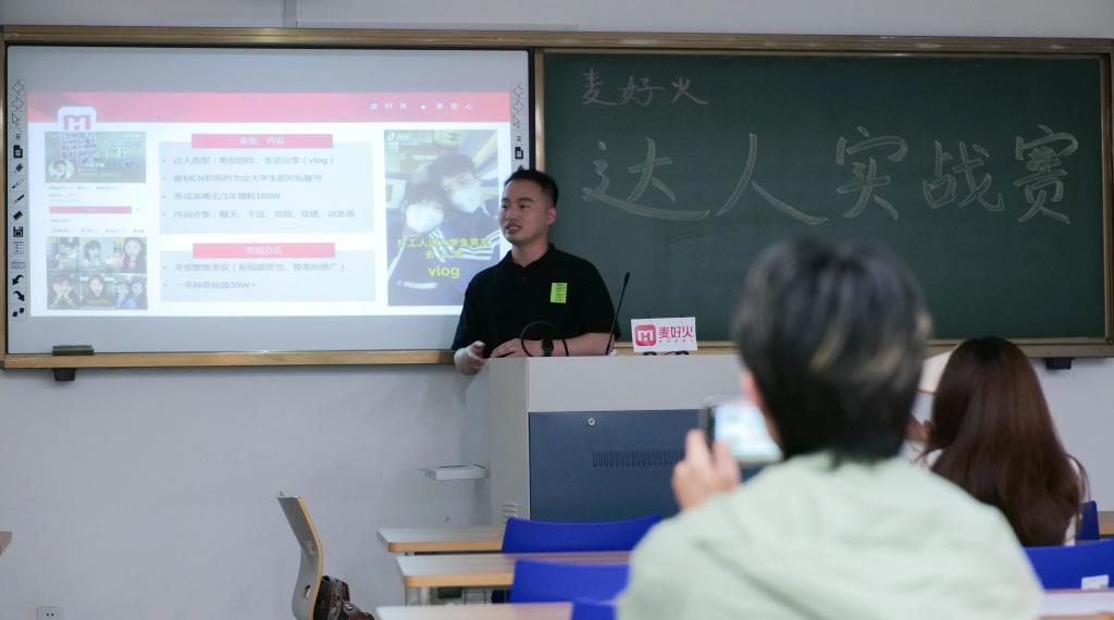 创业学院主办的“浙外竞创沙龙讲座”第四期“抖音达人实操”系列讲座在融C102正式开讲。本次讲座邀请麦好火(浙江)科技有限公司团队专业培训讲师王禹融及其团队成员主讲。