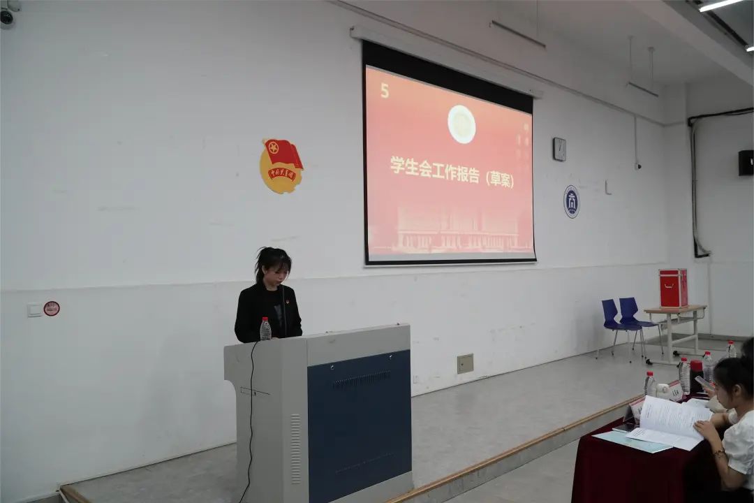 包典同学代表学生会作工作报告。她回顾、总结以往学生会的工作。同时展望、设想了下一阶段学生会各项工作的推进,提出将在组织动员青年学生坚定不移跟党走、打造创新品牌活动、切实维护大学生合法权益等方面履践致远。