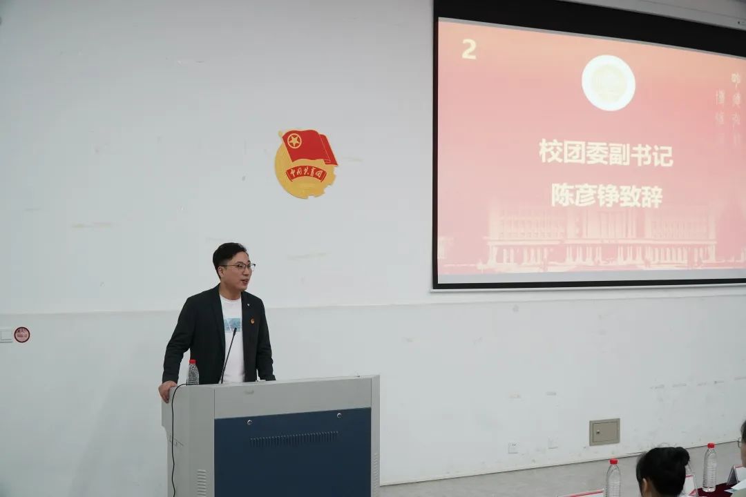 校团委兼职副书记陈彦铮老师向大会致辞,一方面充分肯定了后宫电影院
