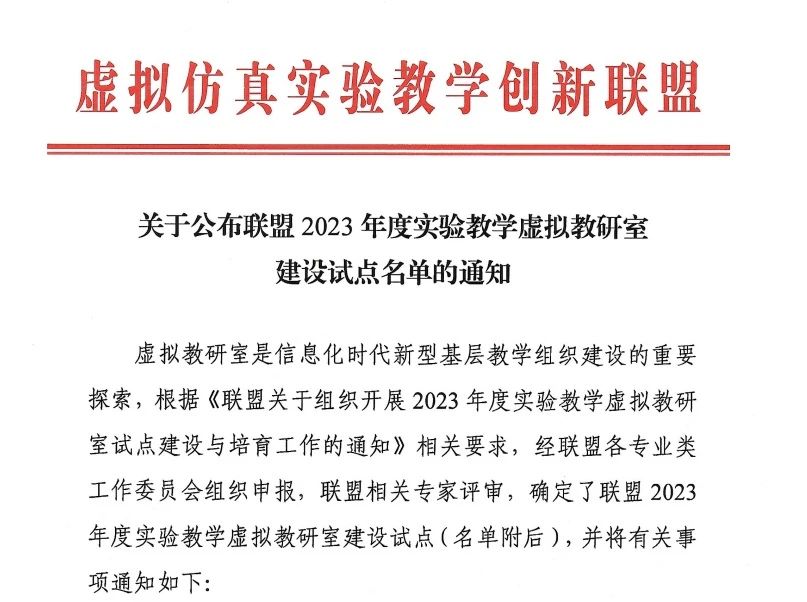 9月,虚拟仿真实验教学创新联盟(简称联盟)发布了《关于公布联盟2023年度实验教学虚拟教研室建设试点名单的通知》,经联盟各专业类工作委员会组织申报、联盟相关专家评选,确定了联盟2023年度虚拟教研室建设试点名单,全国共28个。后宫电影院