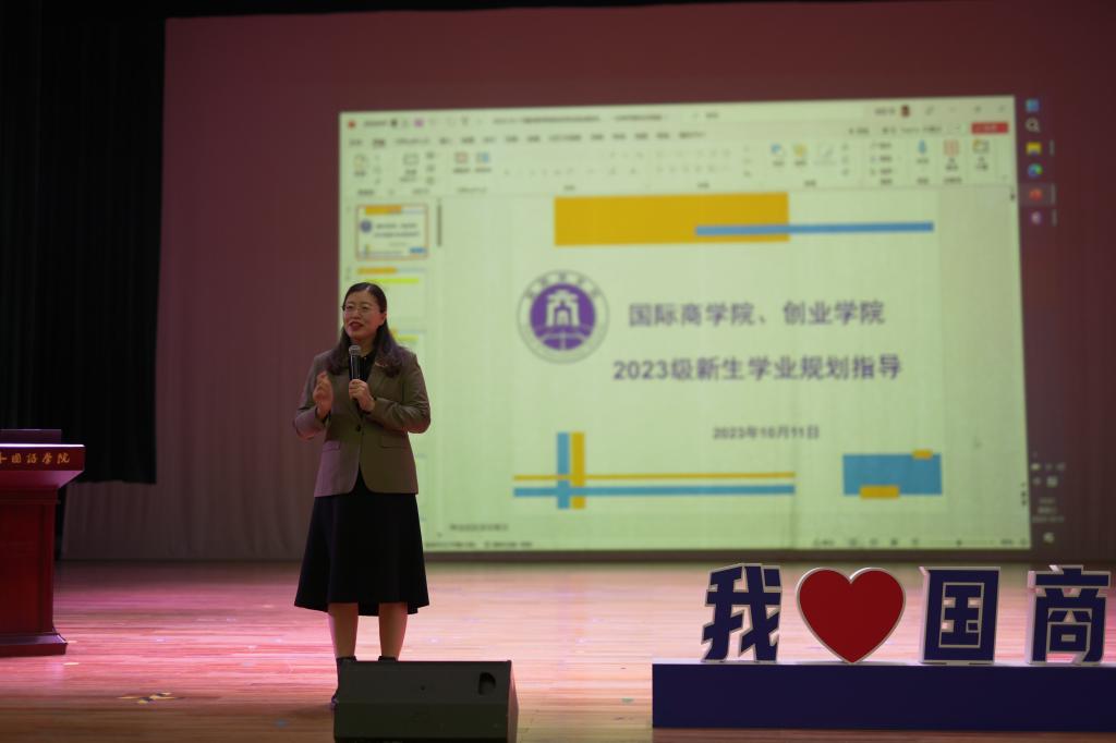 典礼结束后,学院副院长贾新明给新生上学业规划指导课。