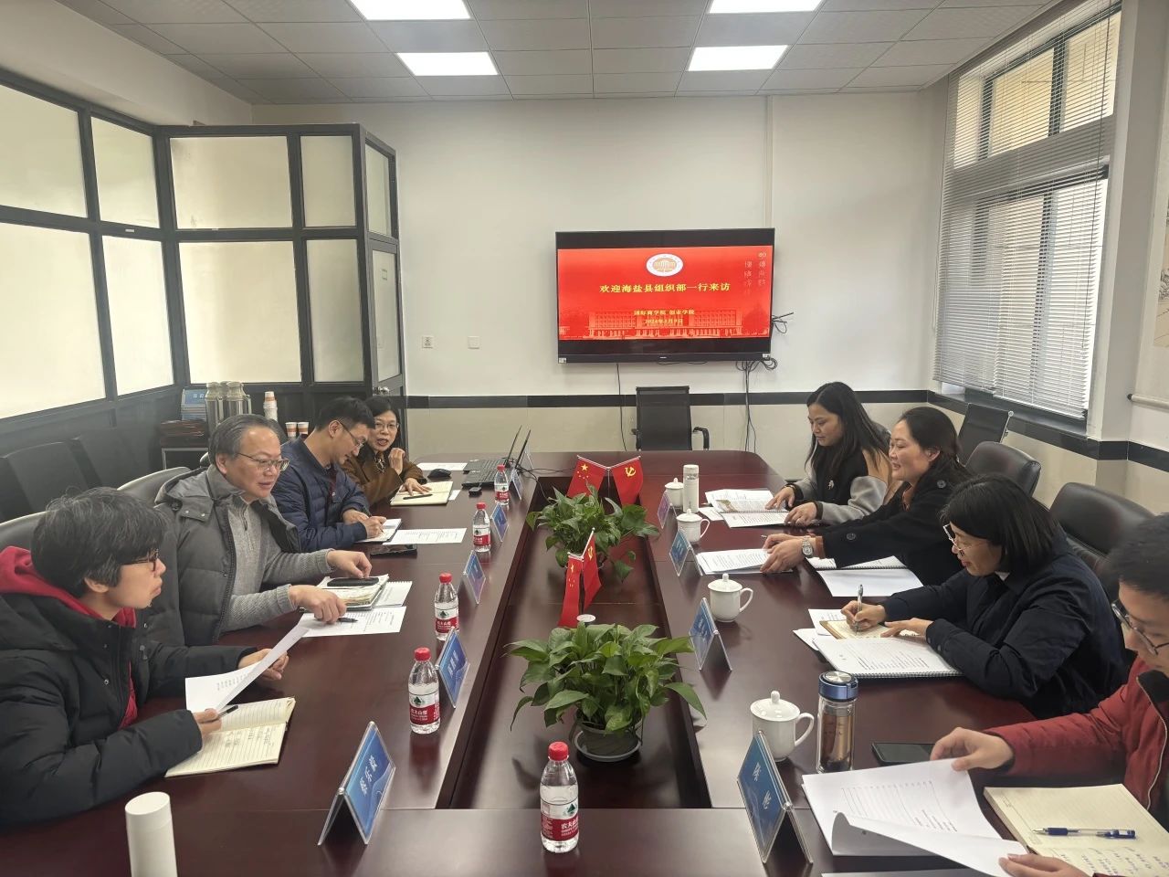 院长范徵介绍了学院的战略布局和重点方向,包括跨境电子商务等六个专业、拉丁美洲研究所等四个研究院所的人才培养和科学研究等建设发展状况;党委书记姚旻对海盐县组织部来访表示热烈欢迎,谈到学校之前与海盐县有深度合作,未来希望能进一步拓宽合作领域,推动院政进一步发展;副院长方美玉对后宫电影院