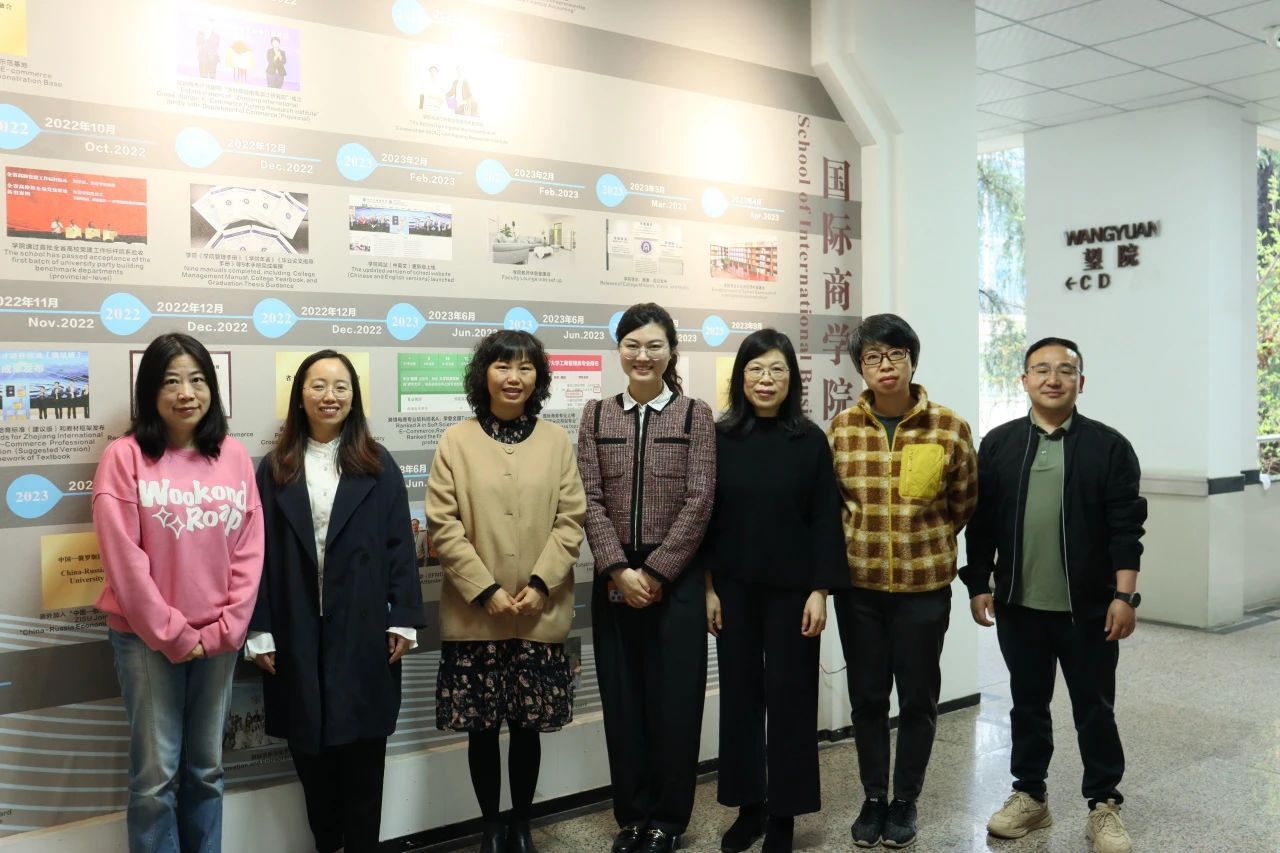 调研跨境电商专业建设。学院党委书记邱萍、副院长方美玉教授、创业学院教研室主任何骅老师、跨境电商系系主任陈胜男老师参会交流。会议由方美玉主持。