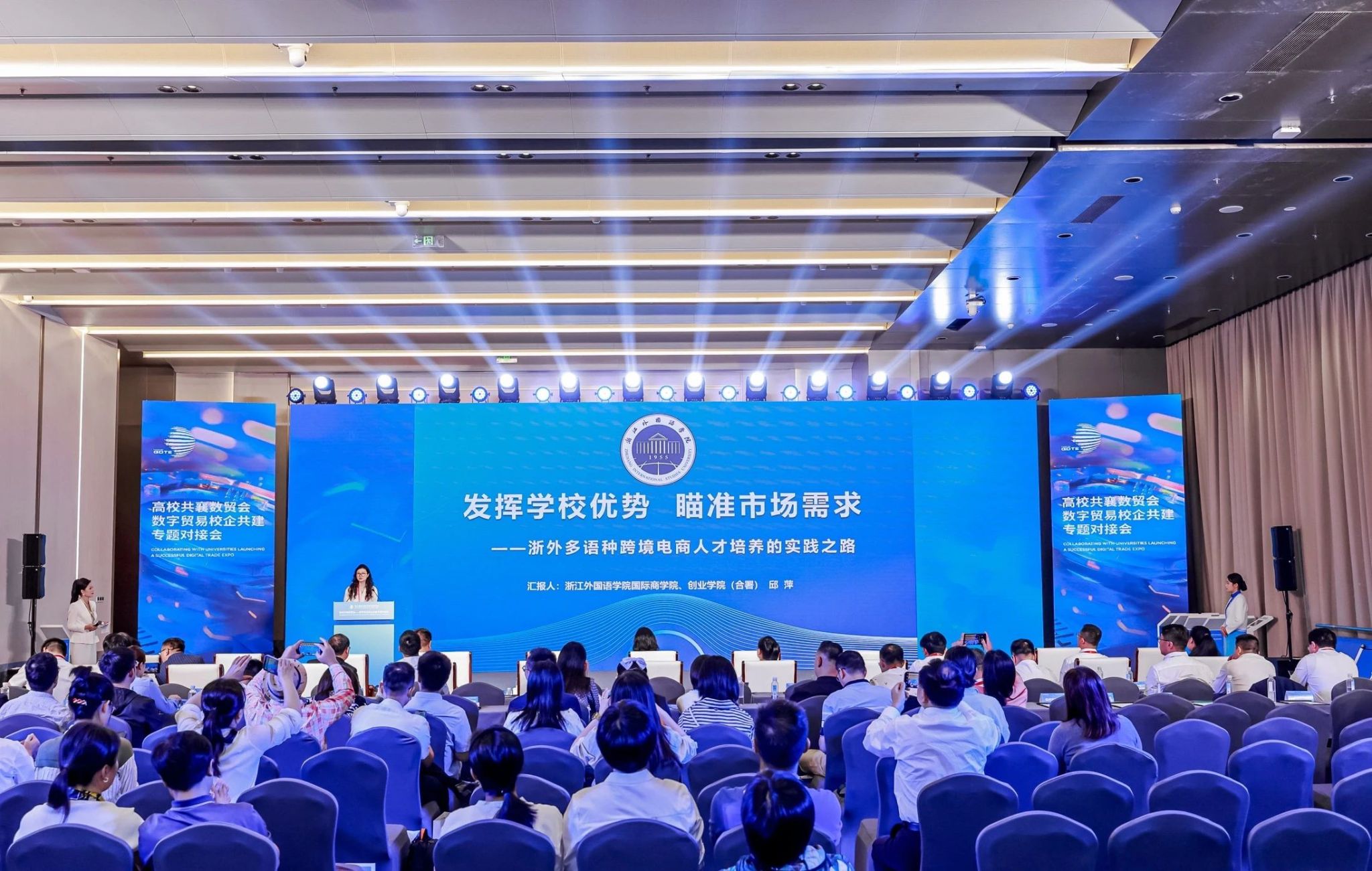 为进一步加强数字贸易领域的学术交流,深化产教融合,推动“政校企产教研”互动循环,9月26日,第三届全球数字贸易博览会之“高校共襄数贸会——数字贸易人才校企共建专题对接会”在杭州大会展中心隆重举行。会议由浙江省人民政府主办,浙江省商务厅、浙江省教育厅、浙江省人力资源和社会保障厅联合承办,230余家政府、企事业单位参会。校党委副书记严齐斌带队参加。