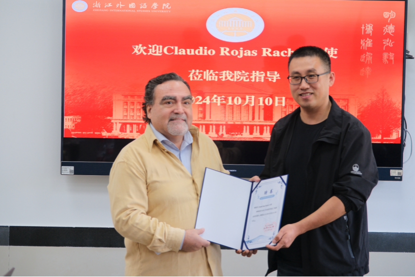 Claudio Rojas Rachel先生表示愿意助力学院拉美研究工作,共同促进学院拉美研究发展,并将理论付诸实践,将言语落于行动的期望,充分利用浙江省优质资源,助力拉丁美洲研究所成为浙江企业和拉美经济的桥梁。之后,Claudio Rojas Rachel与各专业老师进行了深度交流,回答了与拉美地区的跨境电商贸易、文化交流等问题,进一步明确了拉丁美洲研究所的下一步发展方向。