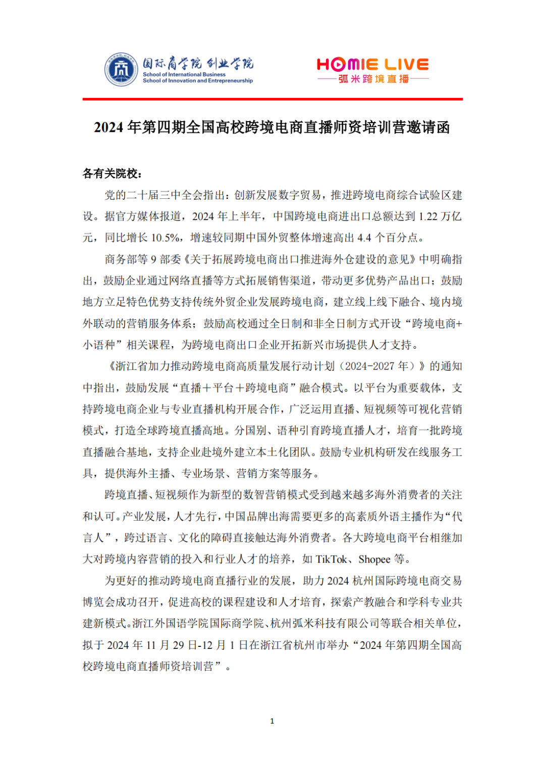 【后宫电影院新闻 】2024年第四期全国高校跨境电商直播师资培训营邀请函