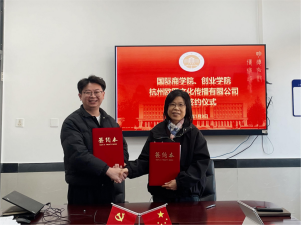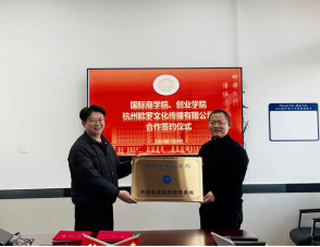 顾小明代表学院授予杭州欧罗文化传播有限公司 “创新创业实践教育基地”牌匾。