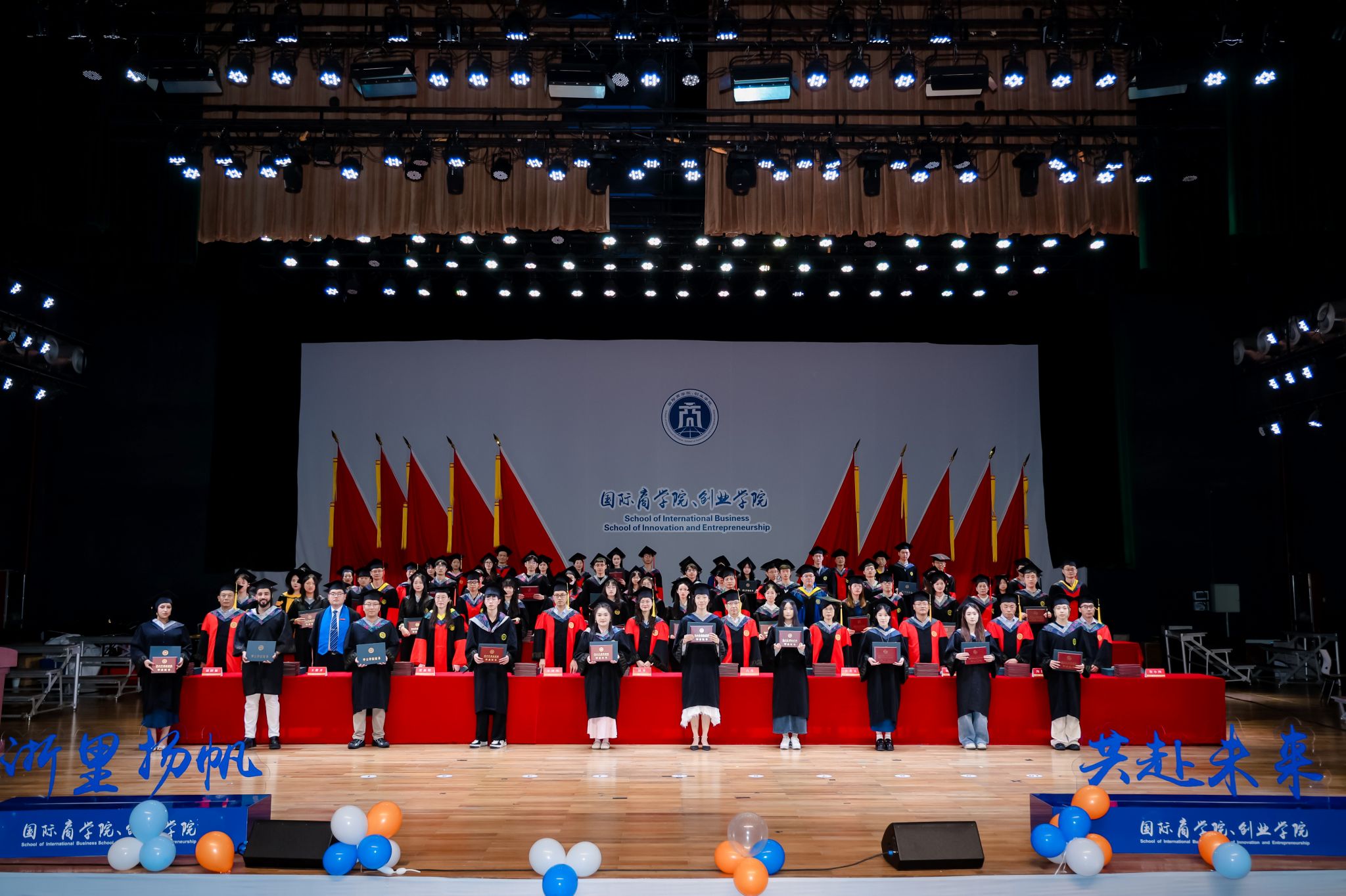 2025届全体毕业生致以最诚挚的祝贺!愿你们化作振翅鲲鹏,携四载积淀的星辉,在人生旷野上踏浪而行——驭长风破万重浪,借青云绘九霄志,让青春的航船从浙外港湾启航,在更辽阔的天地间犁开属于自己的璀璨航线,于新征程中续写无限可能的人生序章。