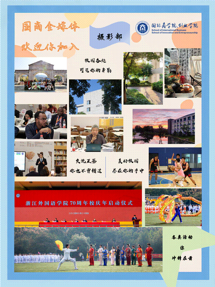 摄影部以镜头定格学院精彩瞬间,以剪辑赋予影像叙事张力,通过公众号呈现校园风采,是摄影剪辑爱好者的创意基地,更是用光影书写学院故事的平台。