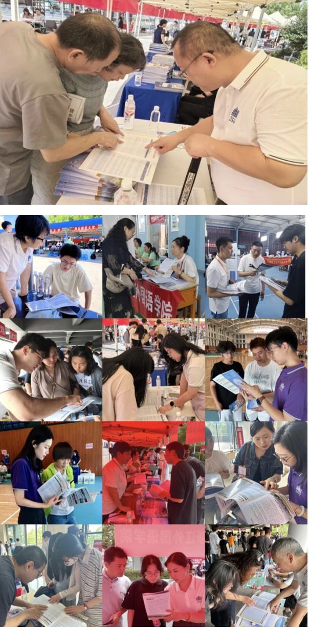 招生筹备阶段,学院党委紧扣“外语名校”建设定位,周密部署宣传工作。现场,学院领导与骨干教师聚焦“浙江省政府-北京大学”合作赋能,深度阐释“外语+”特色培养体系,从语言教学升级到国际交流拓展、跨学科融合实践,全方位展现资源优势;围绕招生政策、专业布局、录取规则等关键问题,以招生手册为载体,精准回应考生与家长关切。针对就业焦虑,团队结合历年就业数据与行业趋势,详解毕业生发展路径,筑牢报考信心。