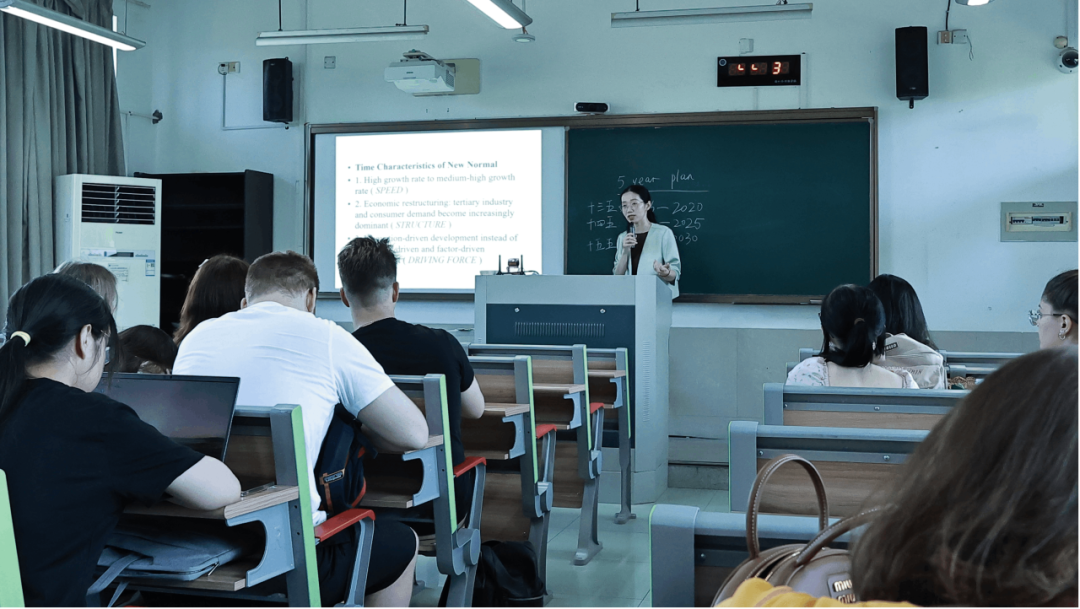 的同学们则调取数据对比城乡配送时效。中英语言与多元视角激烈碰撞,让“城乡二元结构”理论与“中国模式”的实践价值愈发清晰。小组汇报环节,中外学生混合组队,一边用中英双语热烈讨论各国清关政策差异、节日物流应对策略,一边用供应链模型拆解文化差异对商业决策的深层影响。“原来‘国际化’不是简单卖货,而是读懂每个市场的文化密码。”一位留学生在总结中写下的感悟,正是这场跨文化学习的生动注脚。