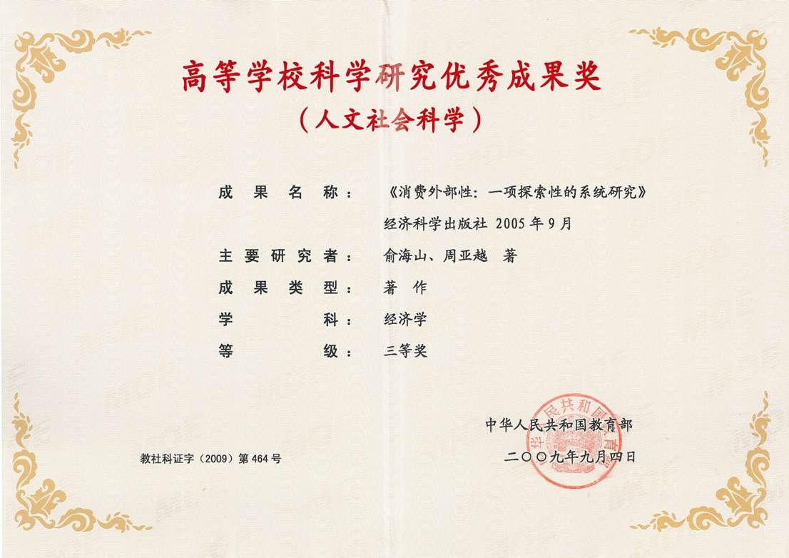 作者研究成果获高等学校科学研究优秀成果奖(教育部奖)