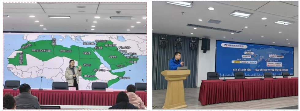 培训班邀请了浙外东语学院副院长曹笑笑博士主讲《走进阿拉伯市场》。曹院长详细介绍了阿拉伯地区的国情与政治、社会与文化、中阿关系发生历程、地区跨境电商市场概况等较为全面的理论知识和行业现状分析。曹院长知识渊博,从阿拉伯的政治、经济、地理、文化等多角度娓娓道来,现场普及了许多阿拉伯的知识点,当地有的法律法规、风俗习惯颠覆了国人的认知,避免日后踩坑。