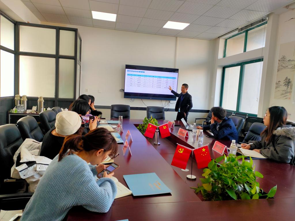 与会领导向来宾介绍学院的专业优势、人才培养、学生就业及校企合作情况。
