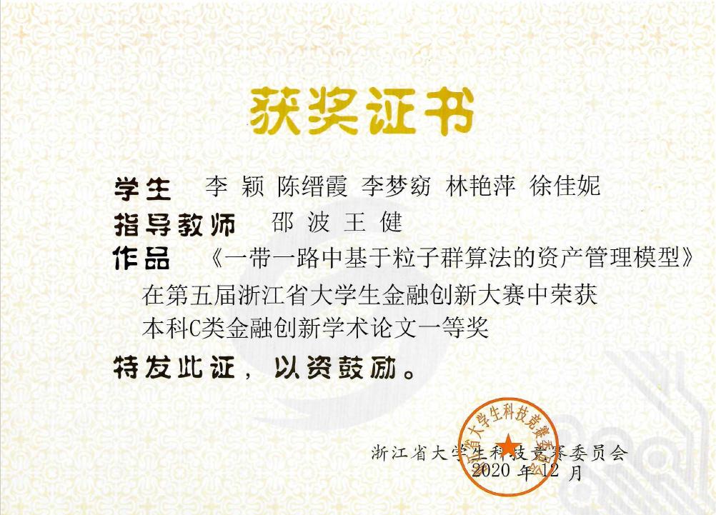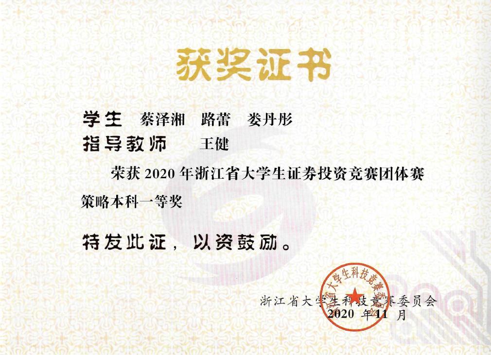 学生获浙江省证券投资大赛一等奖、金融创新大赛一等奖
