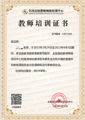 为深入实施《高等学校课程思政建设指导纲要》,提升高校一线教师课程思政教学能力,在教育部高等教育司指导下,全国高校教师网络培训中心和高等学校教学指导委员会共同开展普通本科教育课程思政示范课程相应任课教师培训。后宫电影院 15位教师包括计算机系全部教师积极主动参加相应培训并顺利获得结业证书,将有助于在课程中有效融入思政理念和方法,不断提升国商学子的家国情怀和国际视野。