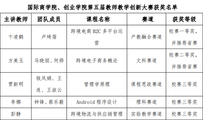 高度重视教师教学创新大赛,精心组织,以赛促教,以赛推新,还特别邀请了全国高校教师教学创新大赛一等奖获得者周悦娜教授对参赛教师进行一对一专项指导,从教学设计、课程思政融入、信息化手段应用等方面提供精细化打磨。下一步,学院将继续深化教学改革,打造一流课程体系,持续优化教师培养机制,助力学校高质量发展。